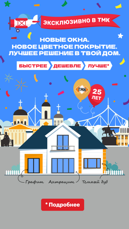За более чем 20 лет на рынке группа компаний «ТМК» стала одним из самых крупных производителей изделий из алюминия, ПВХ и металлоконструкций. В основе нашего успеха лежит философия компании, которой мы придерживаемся в своей повседневной работе. Ее основные аспекты, которые прекрасно знакомы нашим клиентам – это большое количество офисов по всей территории России, масштабное производство и качественные, но при этом дешевые пластиковые окна.